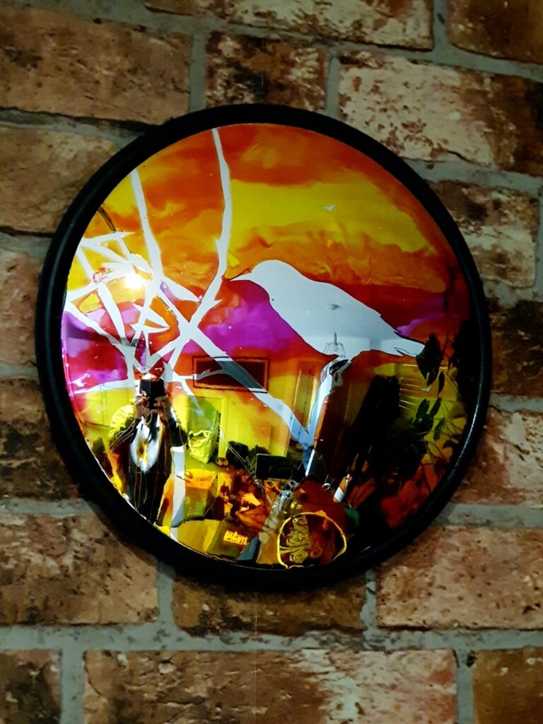 The convex mirror artworks, created by community participants at Daverson Hall in Wideopen, were inspired by the natural wildlife, flora, and fauna of Weetslade, offering unique interpretations and personal connections to the park.